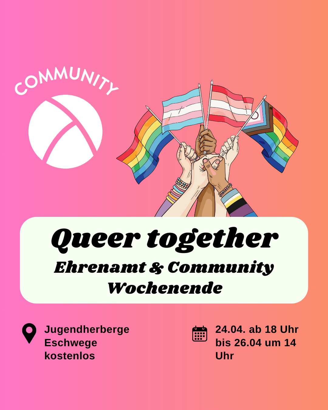 Eine Veranstaltung von Lamdba Bundesverband Liebe Lambda‑Community, wir laden alle engagierten Ehrenamtlichen herzlich ein, gemeinsam mit uns ein richtig tolles Wochenende voller Spaß, Austausch und queerer Gemeinschaft in der Jugendherberge Eschwege zu erleben! 🏳️🌈💛 📅 Wann: 24.-26. April 2026📍 Wo: Jugendherberge EschwegeAnmeldeschluss ist der 17. März Dieses Wochenende richtet sich an alle, die sich bei Lambda […]
